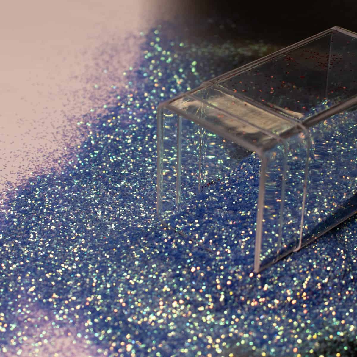 Blueberry Sparkle is a blue to blue-violet glitter with a variety of colors depending on the light source cast upon it. It is a fine glitter with flakes consistent in size and in shape. The flakes are semi-transparent and become bluer as the application of them thickens. Over a dark surface the flakes reflect a greenish and golden hue while over a light surface the flakes appear more purple and less reflective. Under direct light expect to see a variety of light opaque colors such as bright golds, light greens, orange, and light blues. This is a very dynamic glitter with a variety of reflective properties.