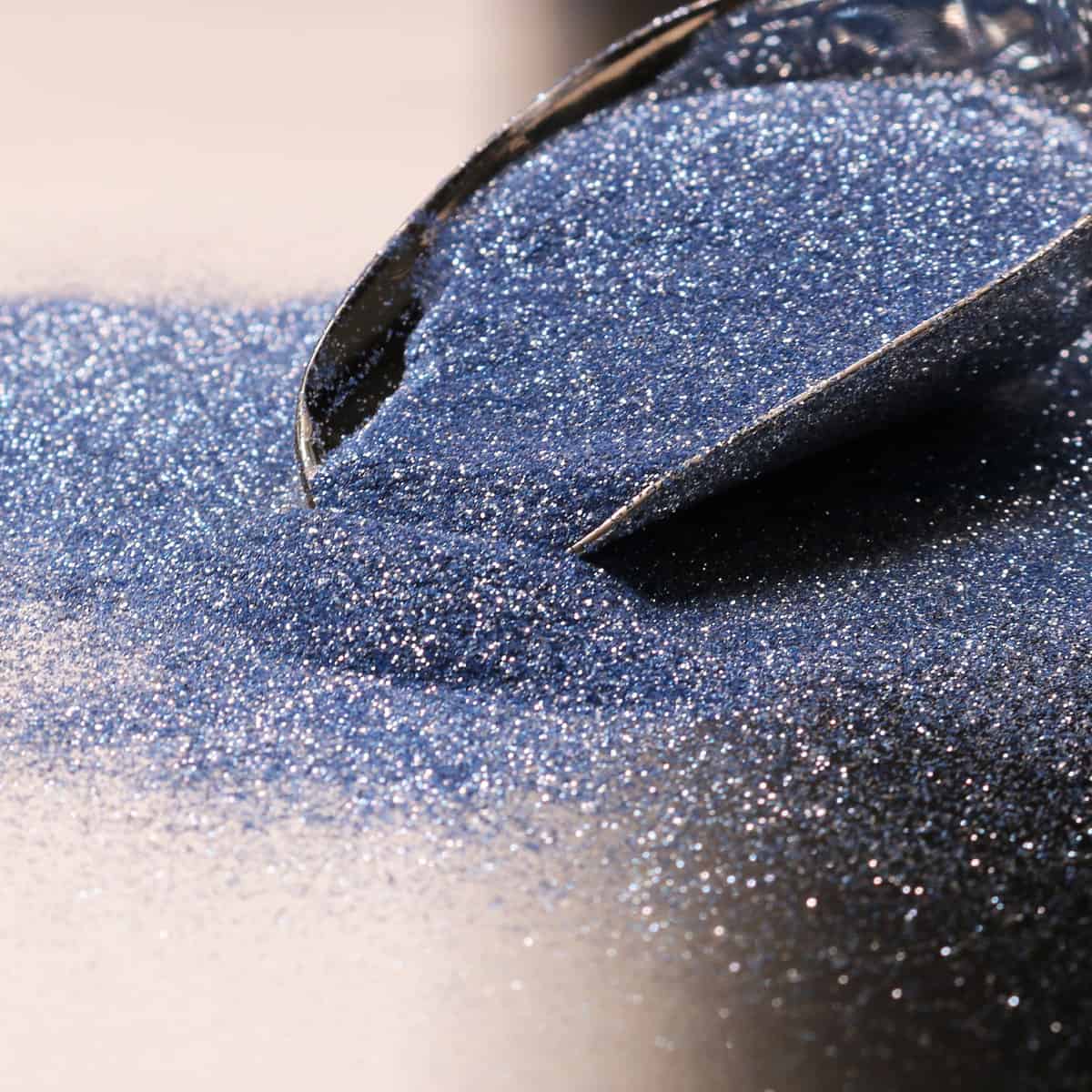 Denim Dazzle is a blue glitter containing silver flakes resulting in a glistening reflective display of silver and light to dark blue hues. This glitter is classified as extra fine and has very small flakes consistent in shape and in size. Since this glitter does contain silver reflective flakes, don’t be surprised if it picks up hues from its surrounding environment. Over a light surface, the blue hues are more apparent, while dark surfaces pick up the shiny silver flakes. Its reflective properties remain the same over dark and light surfaces.