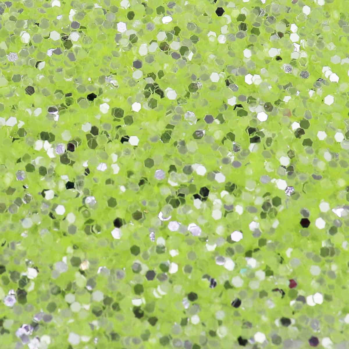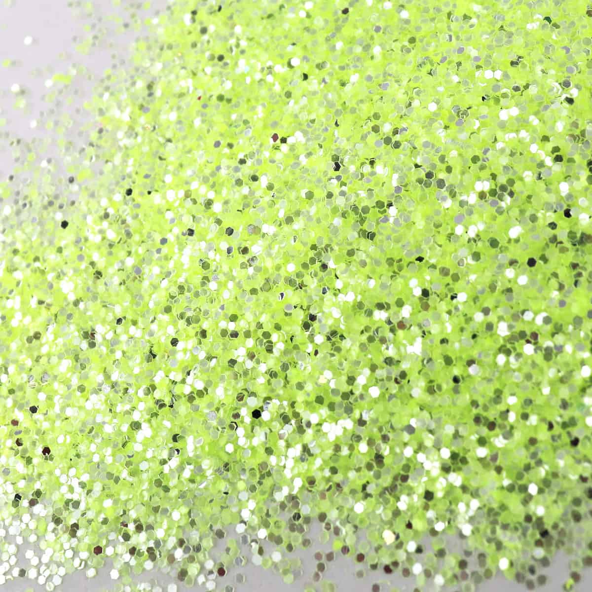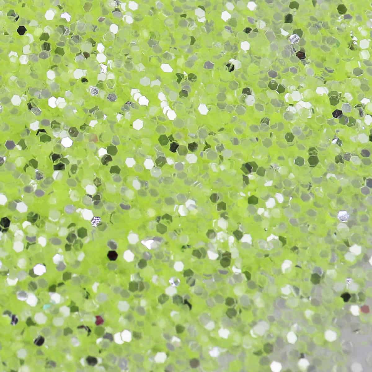Lemoncello is a bright yellow glitter with consistent medium-sized hexagonal shaped glitter flakes. This glitter is half and half yellow translucent pieces and silver metallic pieces creating a unified variety.