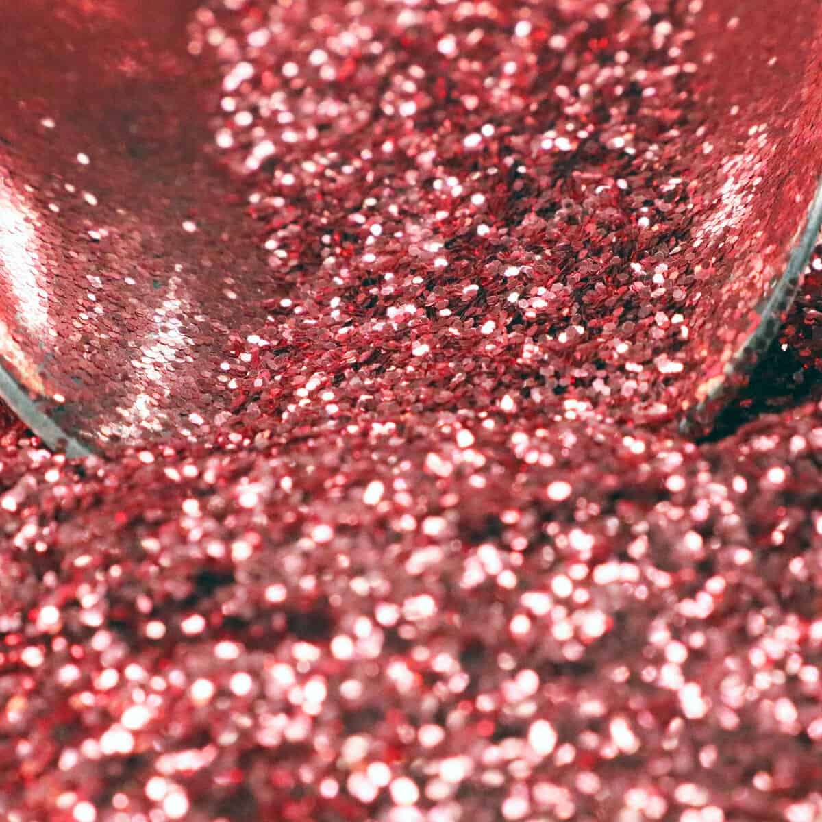 Magma is a beautiful fine reflective glitter. It’s consistent in color and in size. It has a vibrant reddish-pink hue with a metallic-like quality to it. It reflects a soft dark pink all the way to a bright white depending on the angle and intensity of the light. Its reflective property is intensified over a white background while the hue is intensified over a dark background. Don’t be surprised if you see splashes of red in this glitter!