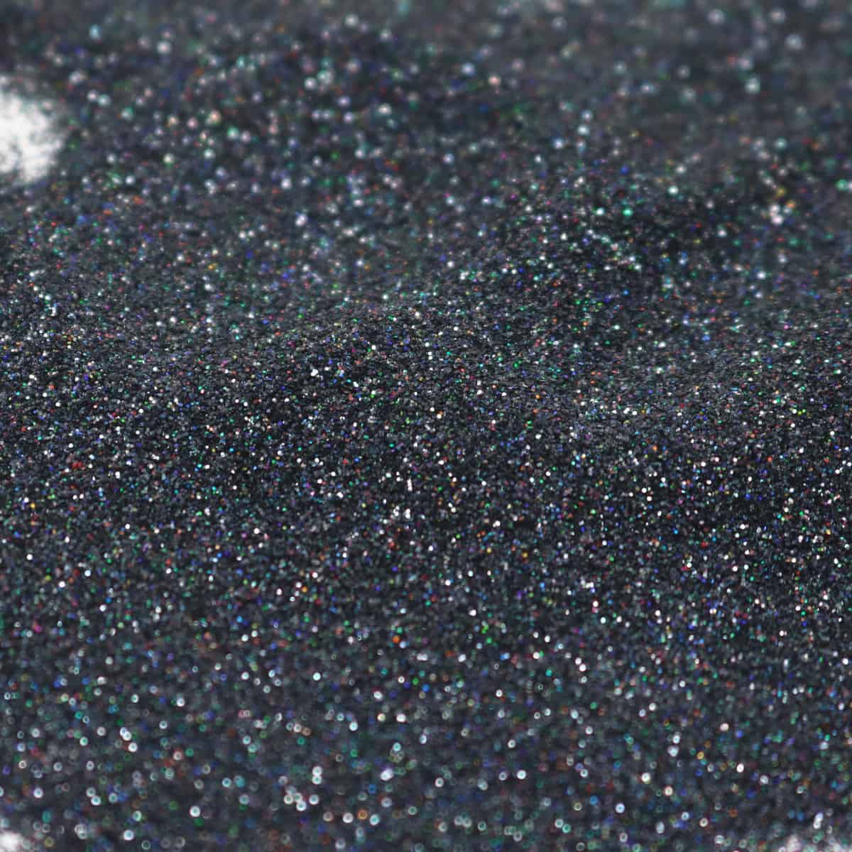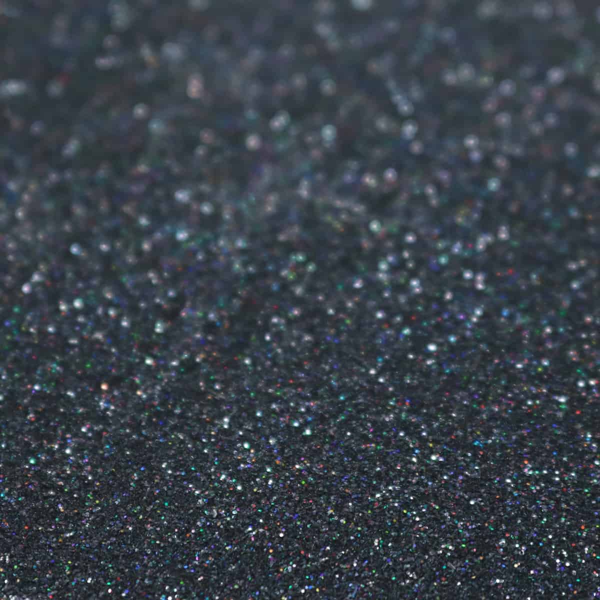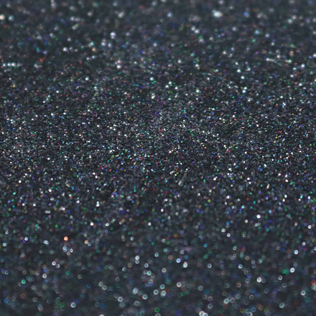 Quasar is a fine glitter with very small colorful reflective particles. It’s underlying body is black, however it is loaded with color. Lots of rich jades, deep blue, violet, orange, pink, and yellow can all be reflected back under certain light angles and intensities. This glitter is mainly black but the pops of color also make it very unique. It doesn’t change much in color and reflectiveness if used over light or dark backgrounds.