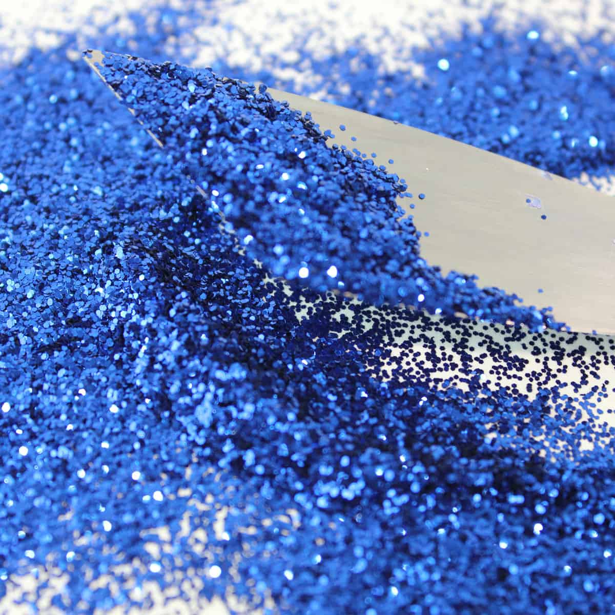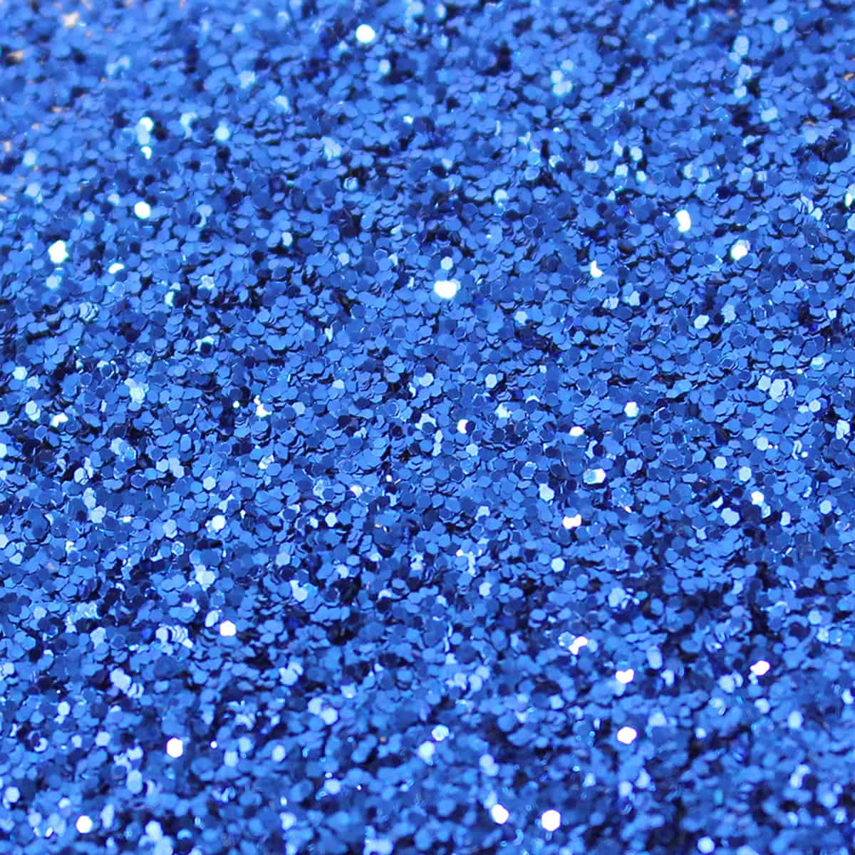 Royal is a vibrant blue glitter with a strong hue. This glitter is small and consistent in flake size. It is reflective and expect to see a variety of beautiful blues casted back under any light conditions. Low light conditions result in a darker blue hue whereas lighter light conditions result in a strong variety of blues.