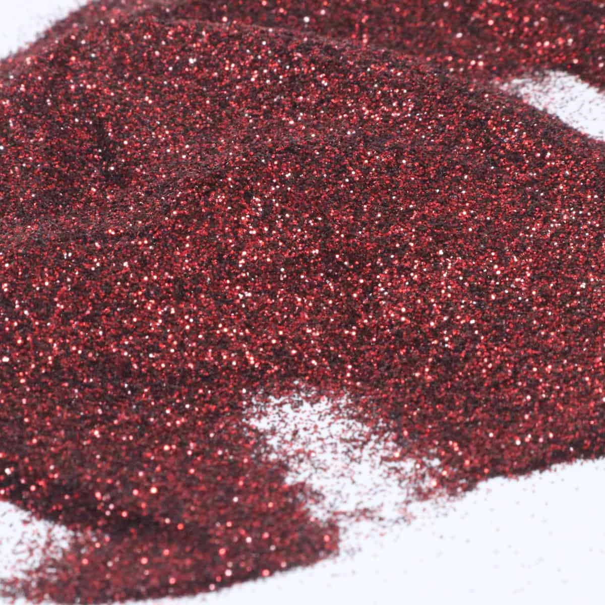 Chipotle is a deep cool red glitter with fine metallic flakes. This glitter will display a wide range of rich ruby reds. The thicker this glitter the darker the body of red will become. It’s metallic flakes that are consistent in shape and size will retain their color over light and dark backgrounds.