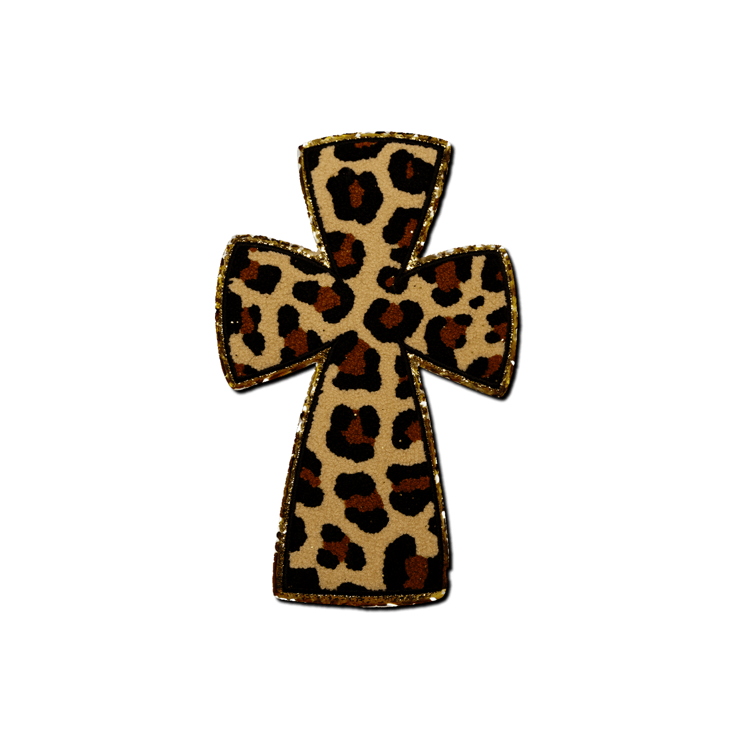 • Style: Cheetah print cross with metallic gold embroidered outline