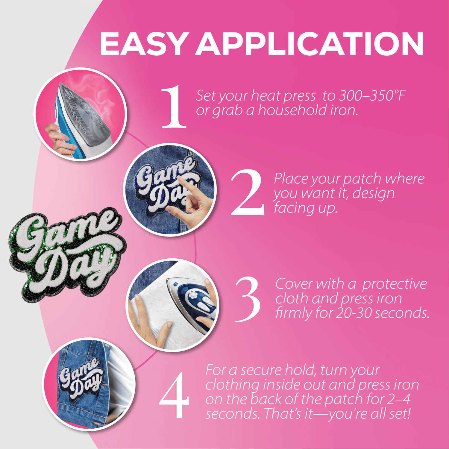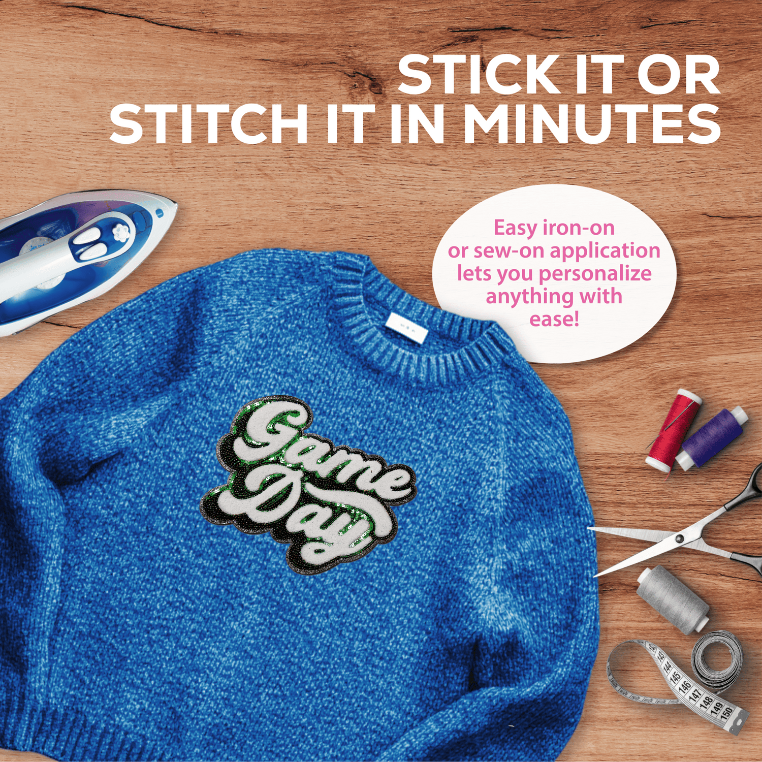 Get ready to cheer in style with this Game Day chenille patch! Featuring vibrant green lettering, this 11-inch iron-on applique is the perfect way to show off your game day spirit. Whether you're heading to the stadium, tailgating, or just repping your favorite team, this patch makes a bold statement on jackets, bags, hats, and more!