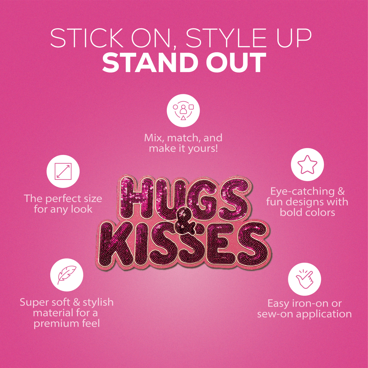 Spread love everywhere you go with this adorable Hugs & Kisses chenille patch! Featuring soft pink lettering in a plush, textured design, this 11-inch iron-on applique adds the perfect sweet touch to jackets, tote bags, hats, and more. Whether you’re all about cozy vibes or looking for a cute way to personalize your style, this patch is a must-have!
