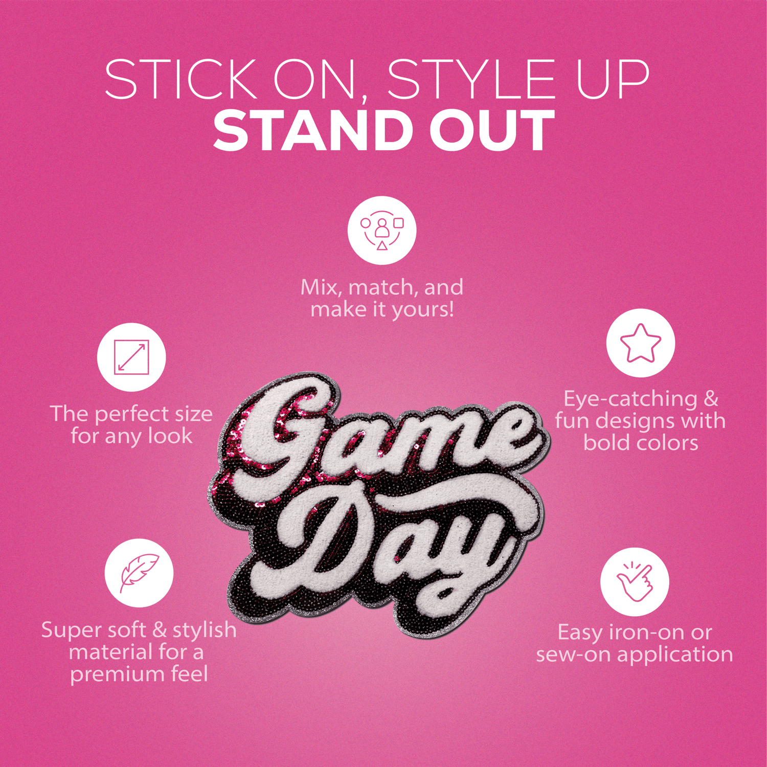 Get hyped for Game Day with this bold red chenille patch! Featuring vibrant Pink lettering, this 11-inch iron-on applique is the perfect way to add a sporty touch to your jackets, bags, hats, and more. Whether you're tailgating, cheering from the stands, or just love the energy of game day, this patch makes a bold and stylish statement!