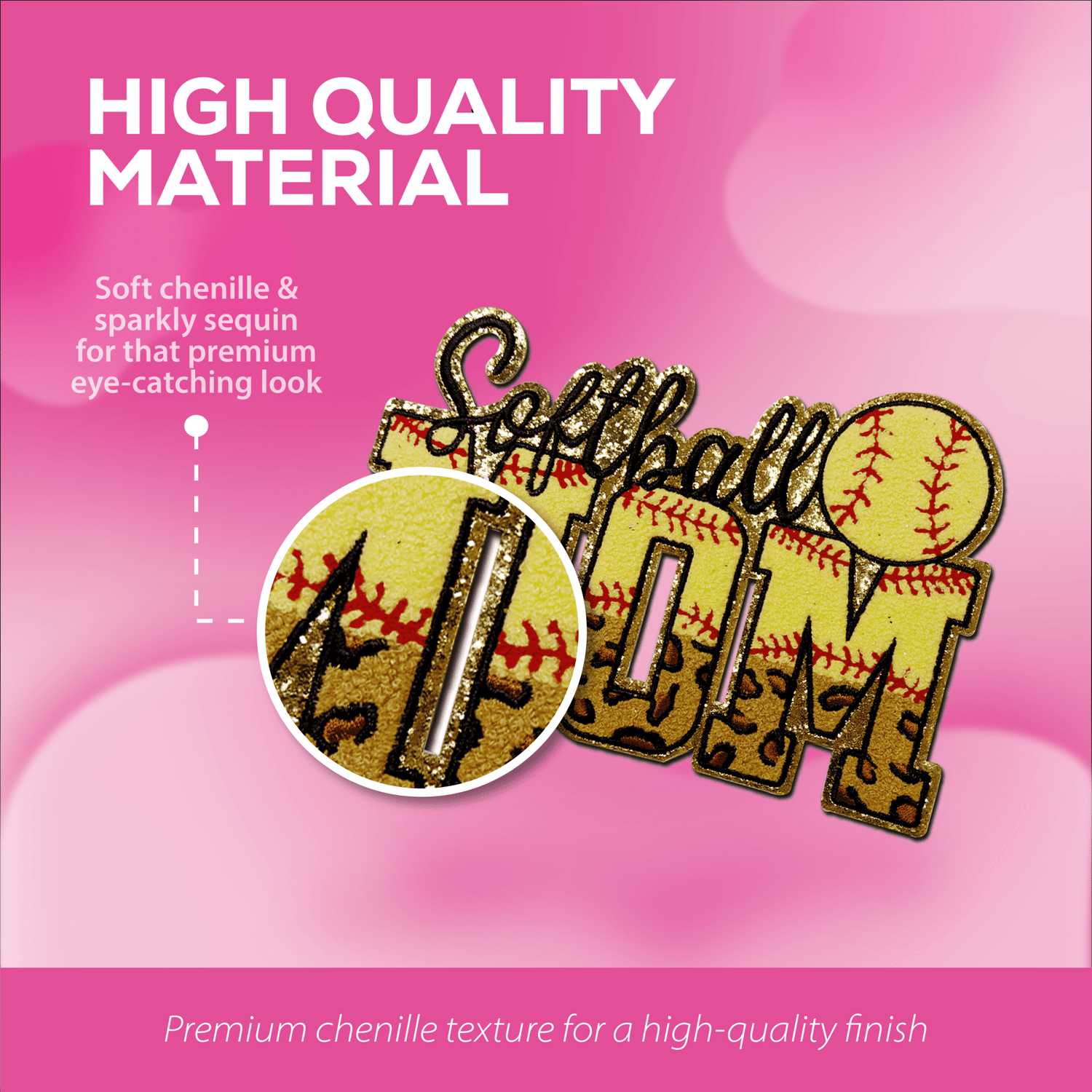 đĽđ Softball Mom Chenille Patch â Softball Print & Cheetah Pattern (11â) â¨