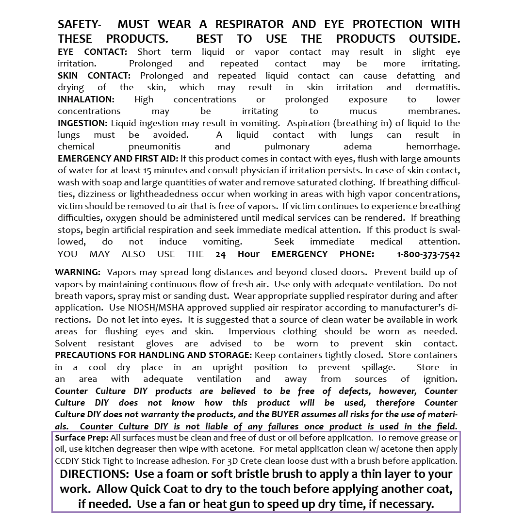 Quick Coat is a VOC free, clear, non-yellowing urethane sealer. It makes the perfect surface for your next layer of resin. Use to seal 3D Crete, marble dips, glitter, vinyl and decals. You can also use a Quick Coat to apply glitter and fabric.