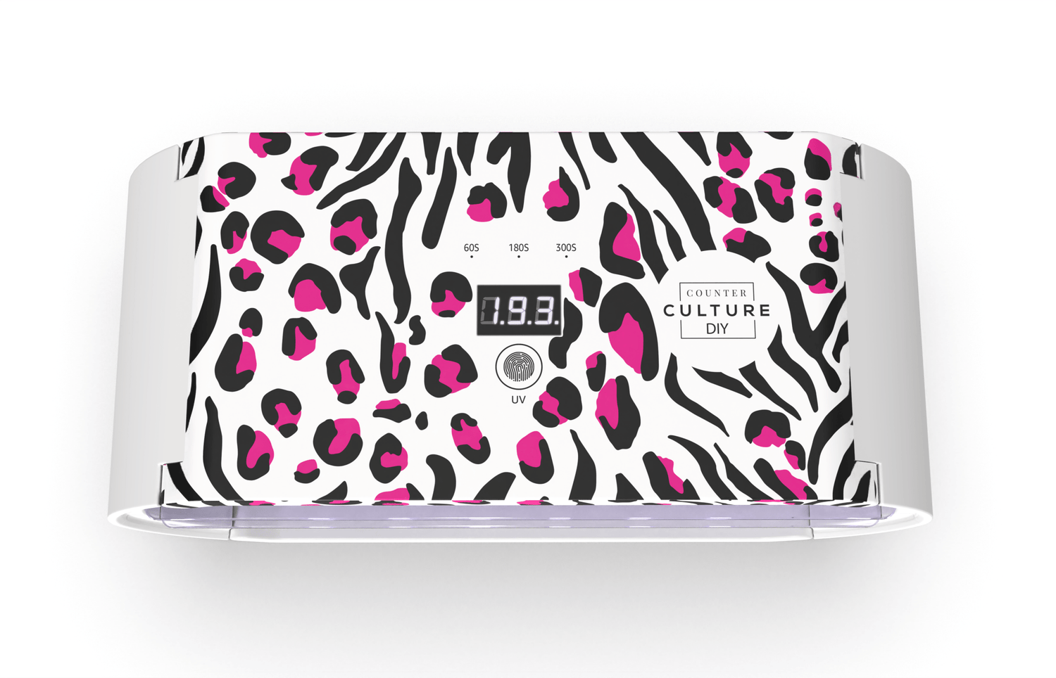 The Counter Culture DIY UV Lamp features a modular dual-lamp design with two clear shelves and two independent cords. Together, they create a powerful 350-degree curing experience, giving you full coverage around your projects.