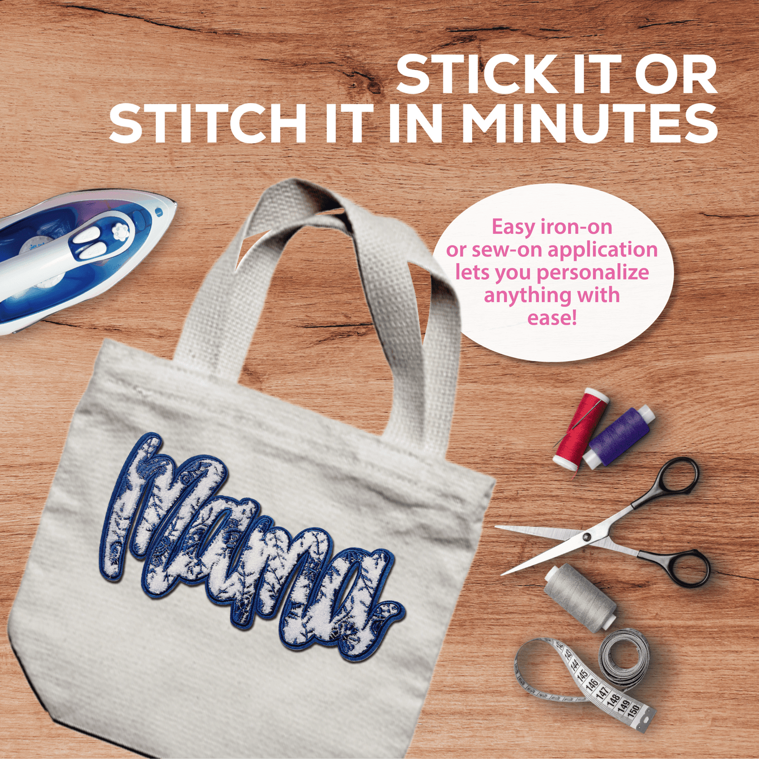 Celebrate motherhood in style with this beautiful Mama chenille patch! Featuring soft, textured chenille lettering in a dreamy blue floral design, this 11-inch iron-on applique is the perfect way to personalize jackets, tote bags, hats, and more. Whether you're a proud mama or looking for the perfect gift for one, this patch adds a delicate yet bold statement to any outfit!