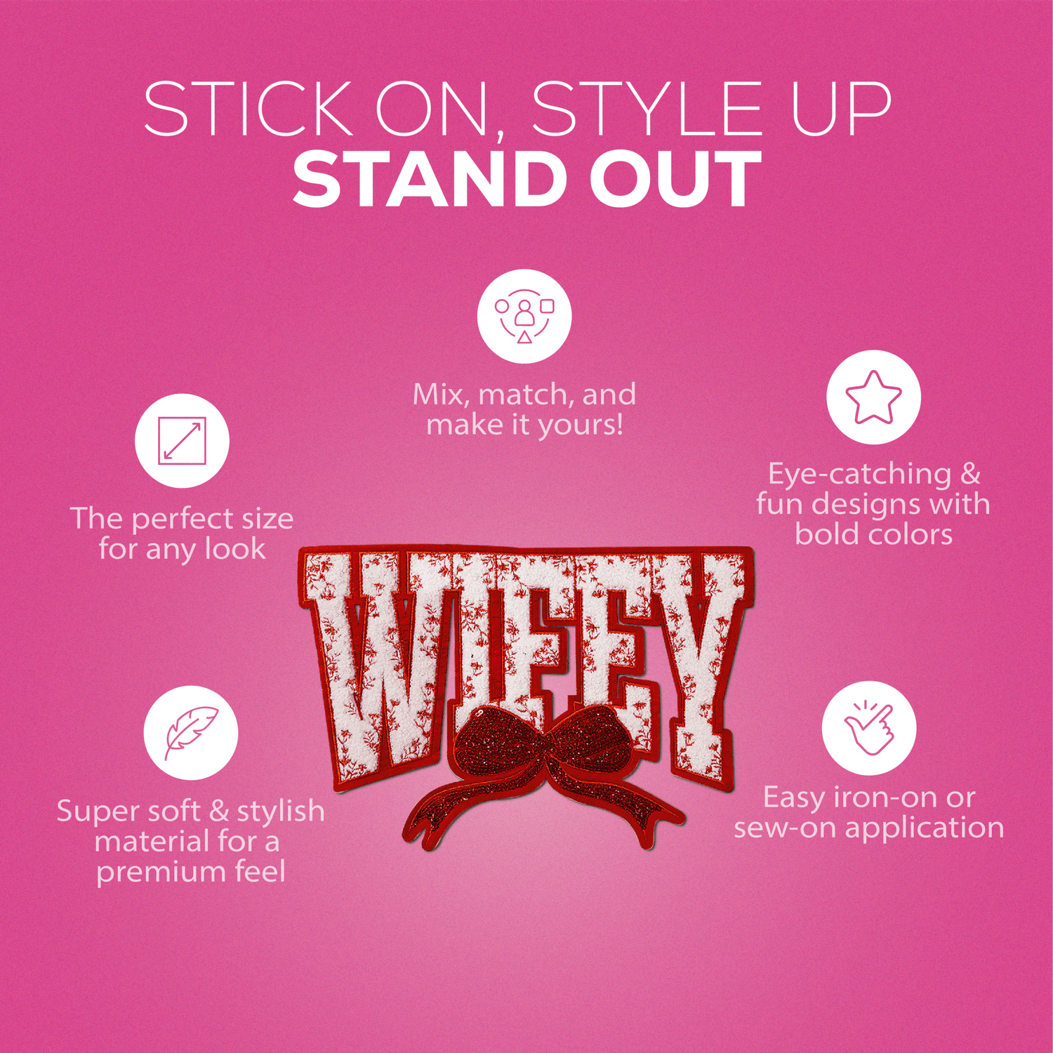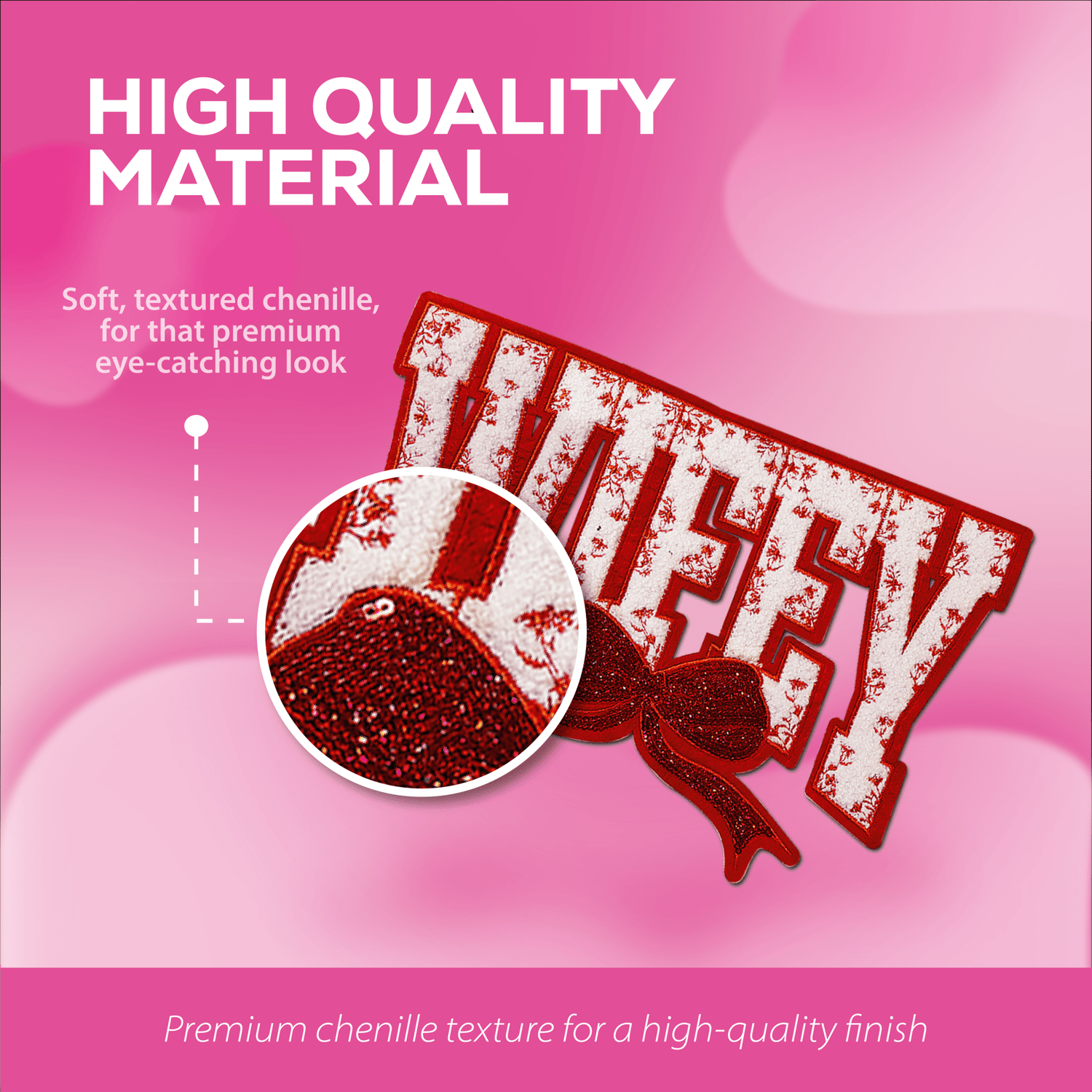 ❤️🎀 Wifey Chenille Patch – Bold Red Lettering with Sequin Bows (11”) ✨